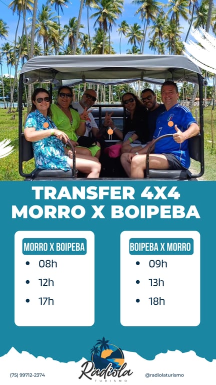 O transfer de Morro para Boipeba é uma experiência única que combina aventura e contato com a natureza. A viagem começa com um emocionante translado em veículo 4x4, que leva os viajantes por trilhas deslumbrantes por cerca de uma hora. Durante o percurso, os participantes são acompanhados por um guia experiente que garante segurança e compartilha informações fascinantes sobre a região e sua biodiversidade exuberante.